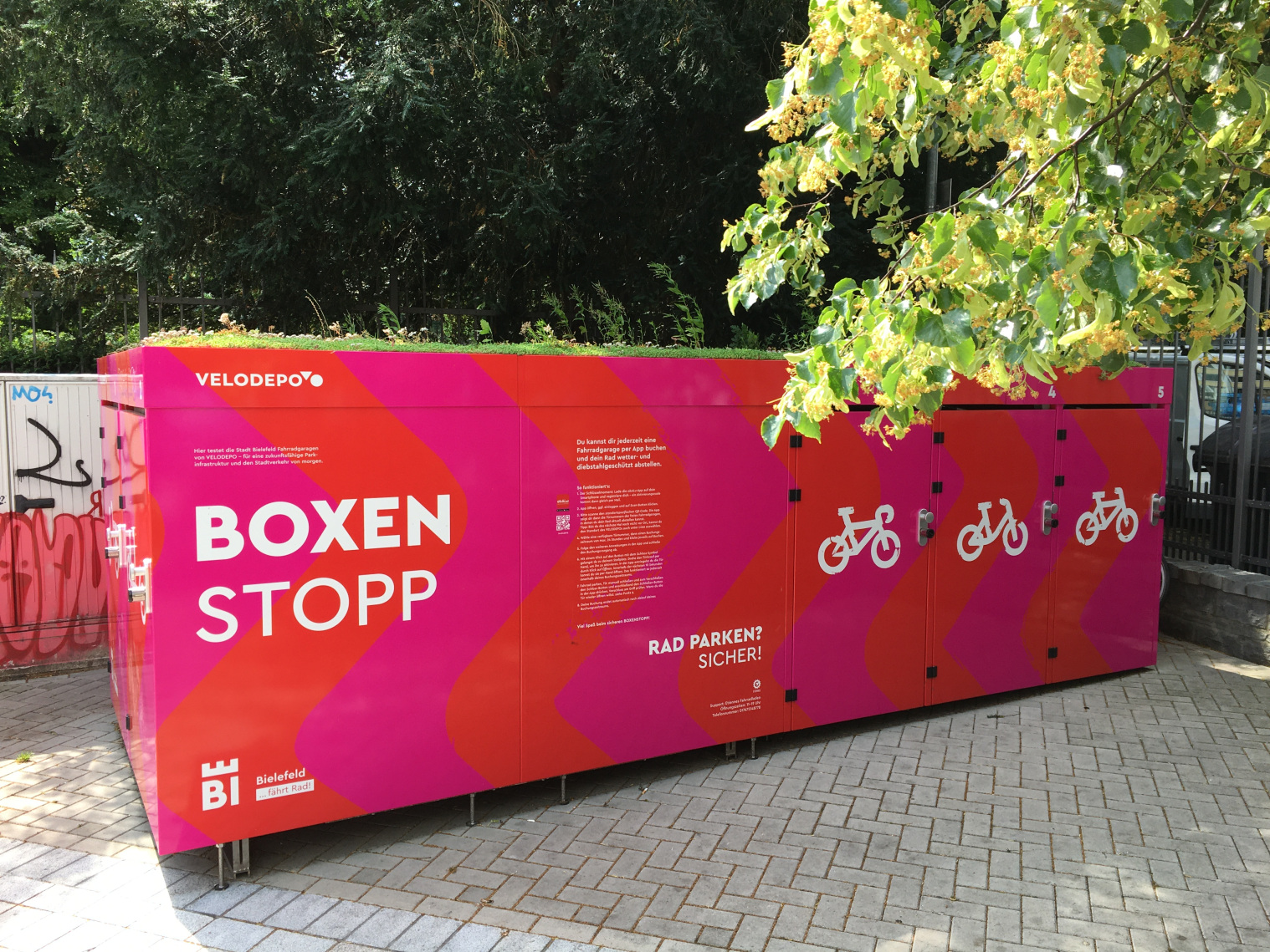 Mit dem neu geschaffenen BOXENSTOPP stehen seit Dezember Fahrradgaragen für 3 Räder und 2 Lastenräder zur Verfügung. Buchungen sind rund um die Uhr möglich!