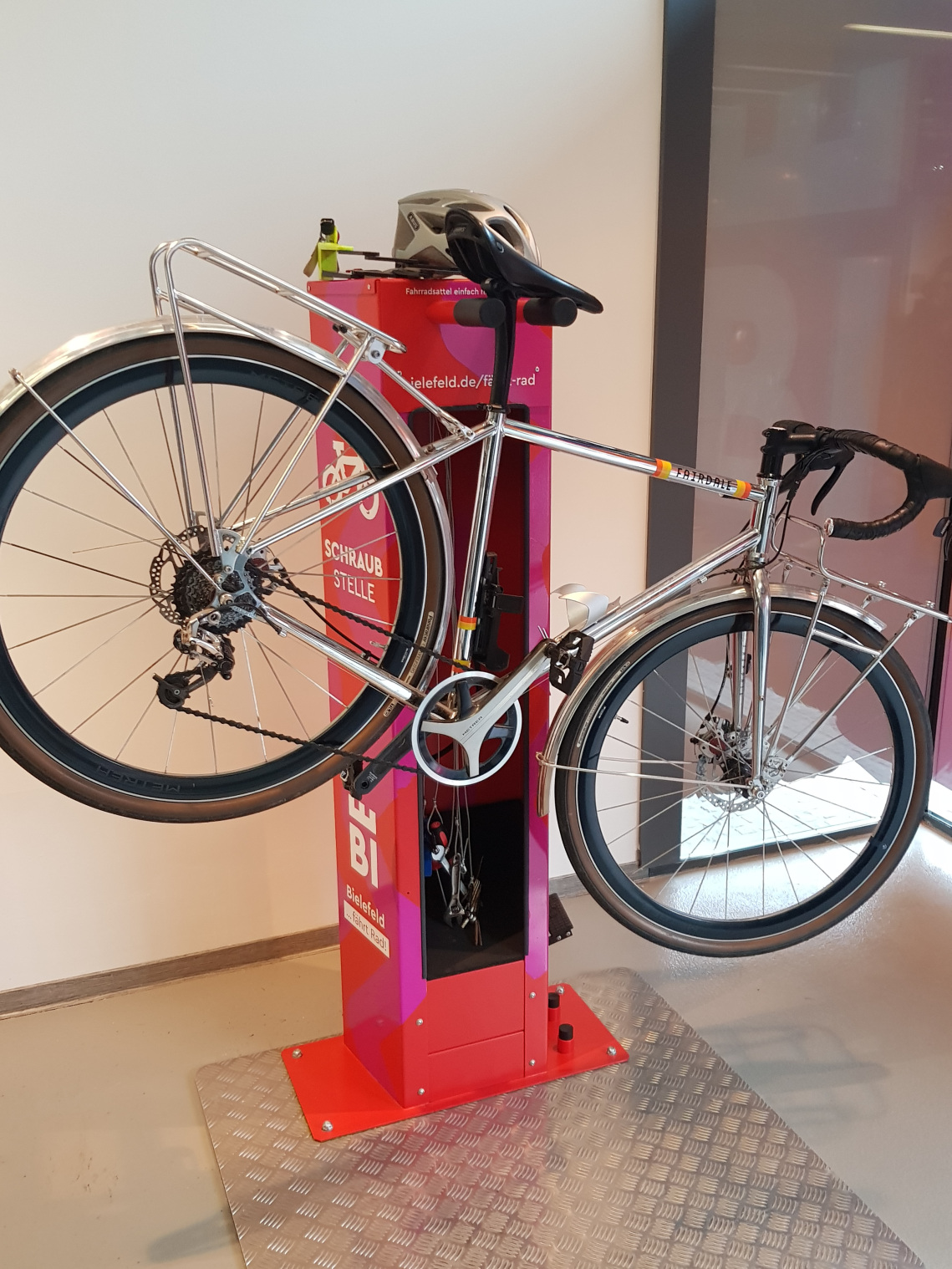 In unmittelbarer Nähe zum Jahnplatz stehen hier 184 moderne Stellplätze in Doppelstockparkern sowie acht Stellplätze für Lastenräder zur Verfügung. Für das Aufladen von Pedelec-Akkus gibt es 12 Schließfächer mit Lademöglichkeit. Kleine Reparaturen können an einer Schraubstelle mit Luftpumpe selbst durchgeführt werden. Ergänzend dazu bietet Etiennes Radladen ein Serviceangebot an. Ein digitales Zugangssystem wird das Fahrradparken demnächst auch 24/7 ermöglichen.