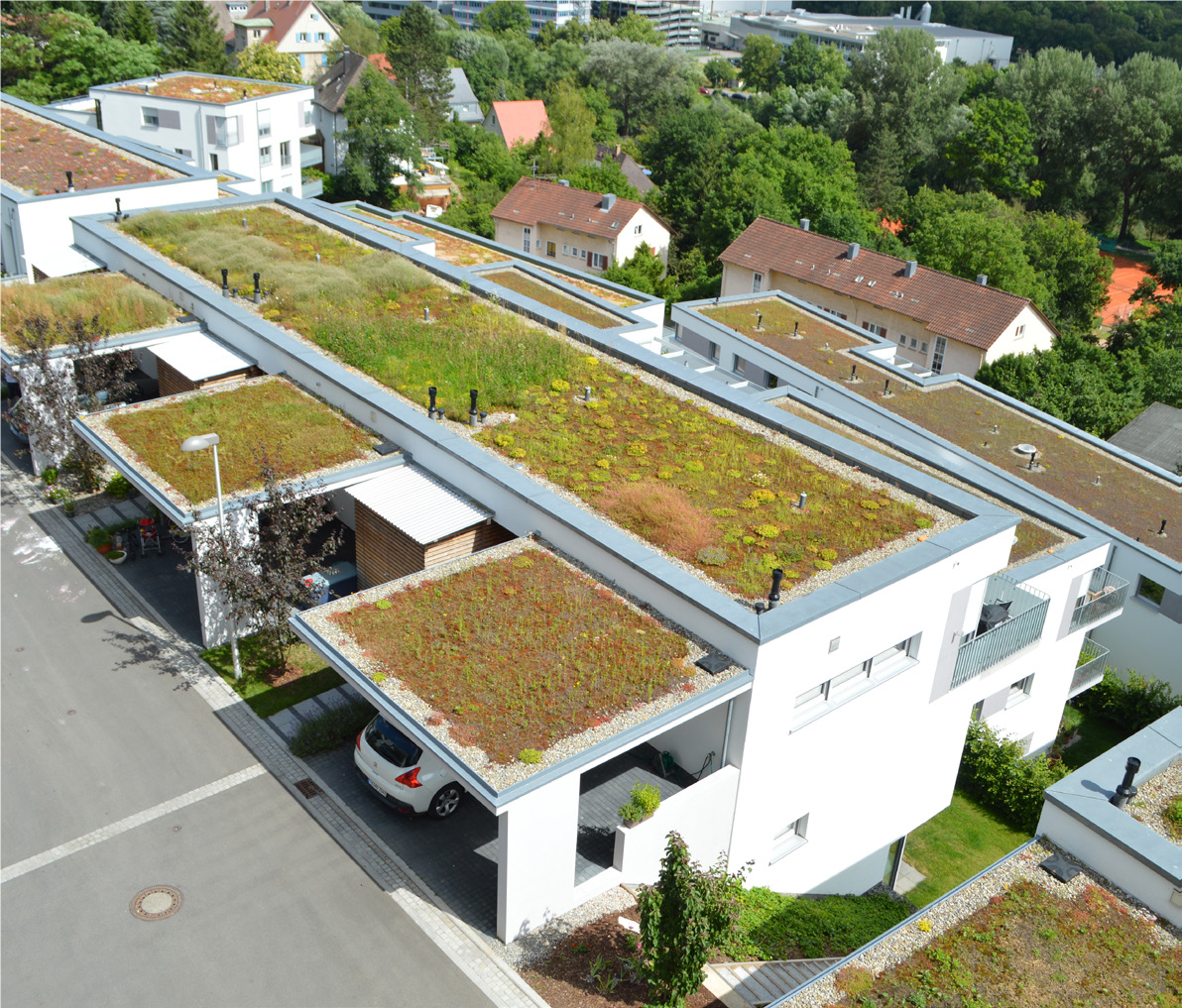 Gerade in der dicht bebauten Innenstadt ist Grün in Form von Dach- und Fassadenbegrünung die (oft einzige) Möglichkeit, die lokalklimatische Situation zu verbessern und einen Beitrag zum Erhalt der Biodiversität und zur Verbesserung des Wohnumfelds zu leisten.