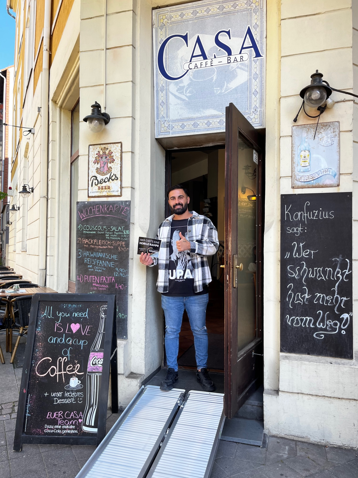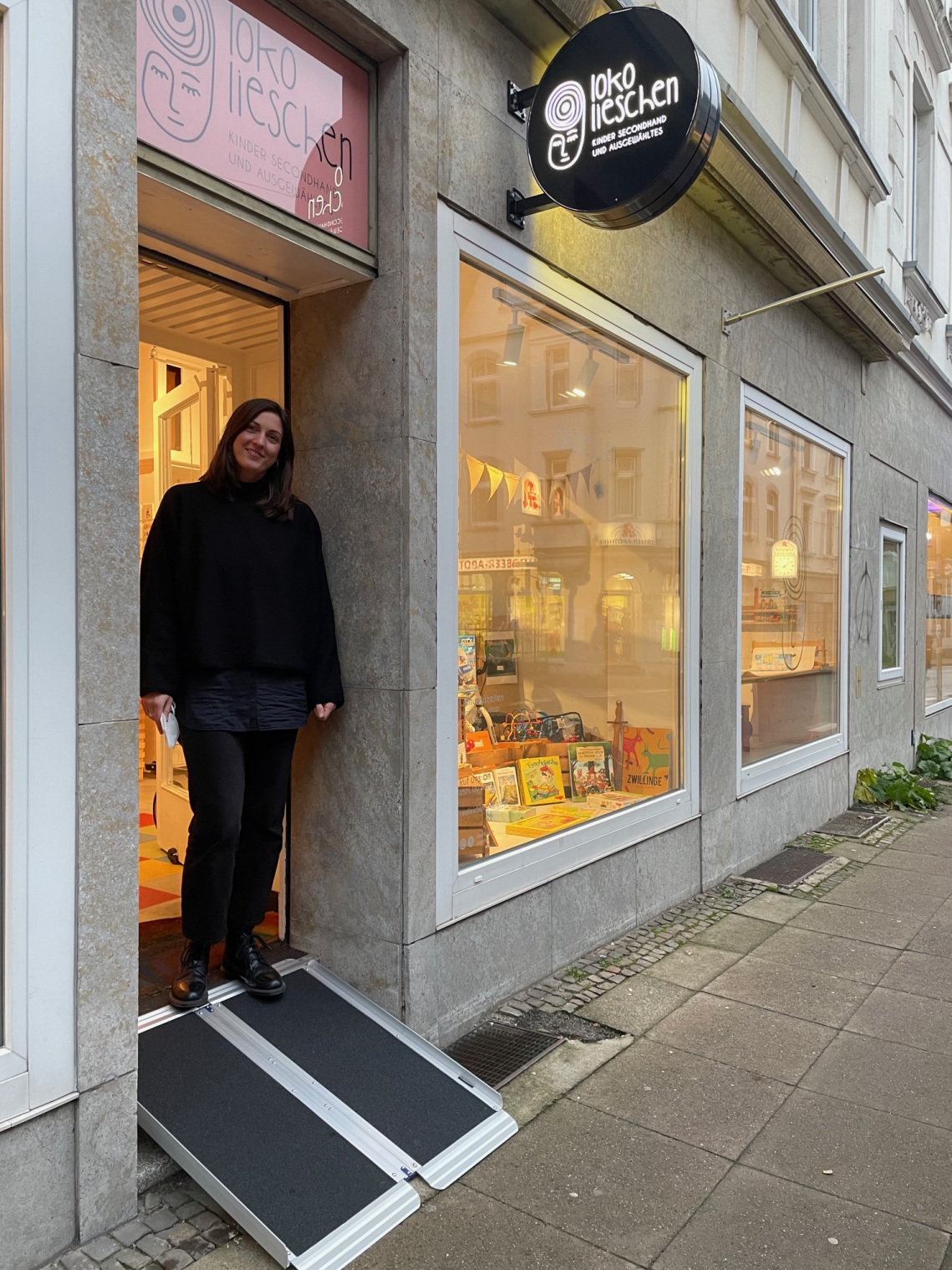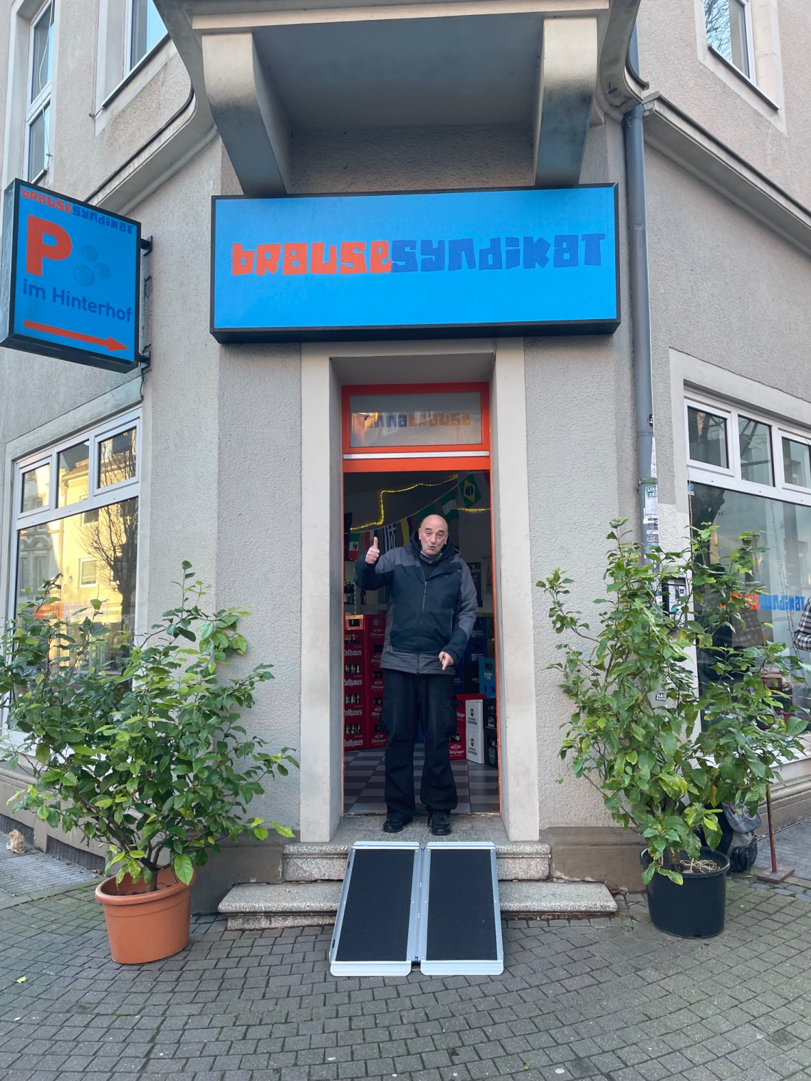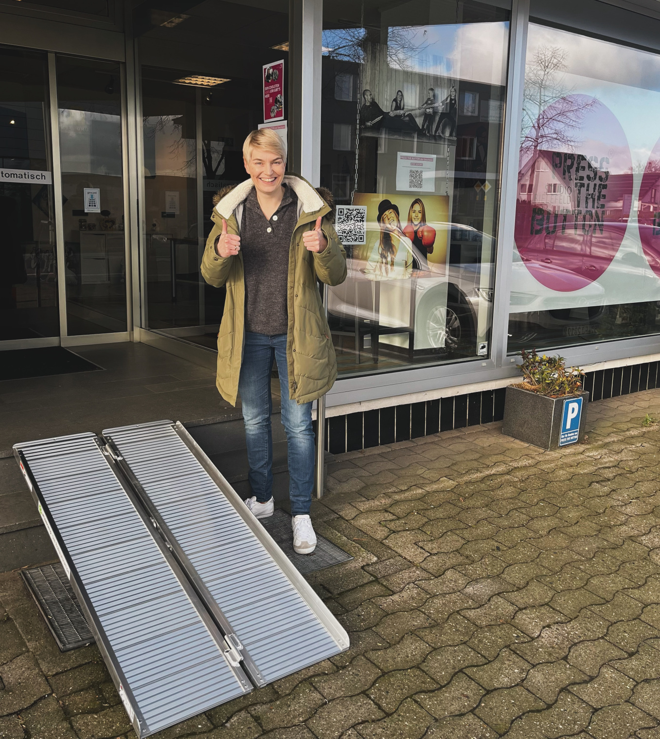 • Das Geschäft kann diese Rampe dann draußen vor die Tür stellen und bei Bedarf damit die Barriere abbauen
