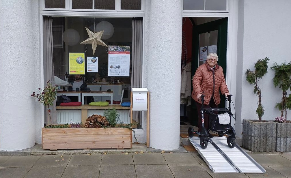 So werden Orte ganz ohne bauliche Maßnahmen barrierefrei und folglich für Menschen im Rollstuhl, mit Rollator oder Kinderwagen oder Mensch mit Gipsbein zugänglich.