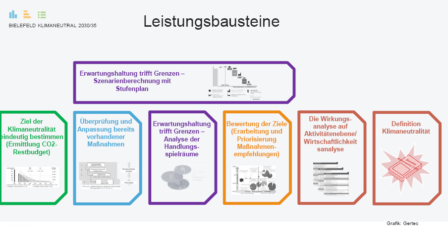 Für die Erarbeitung eines Konzeptes „Bielefeld Klimaneutral 2030“ wurde die GERTEC GmbH beauftragt und erarbeitet mit breiter Beteiligung bis zum Herbst eine Strategie. Eine Präsentation zum Konzept informiert über den geplanten Ablauf.