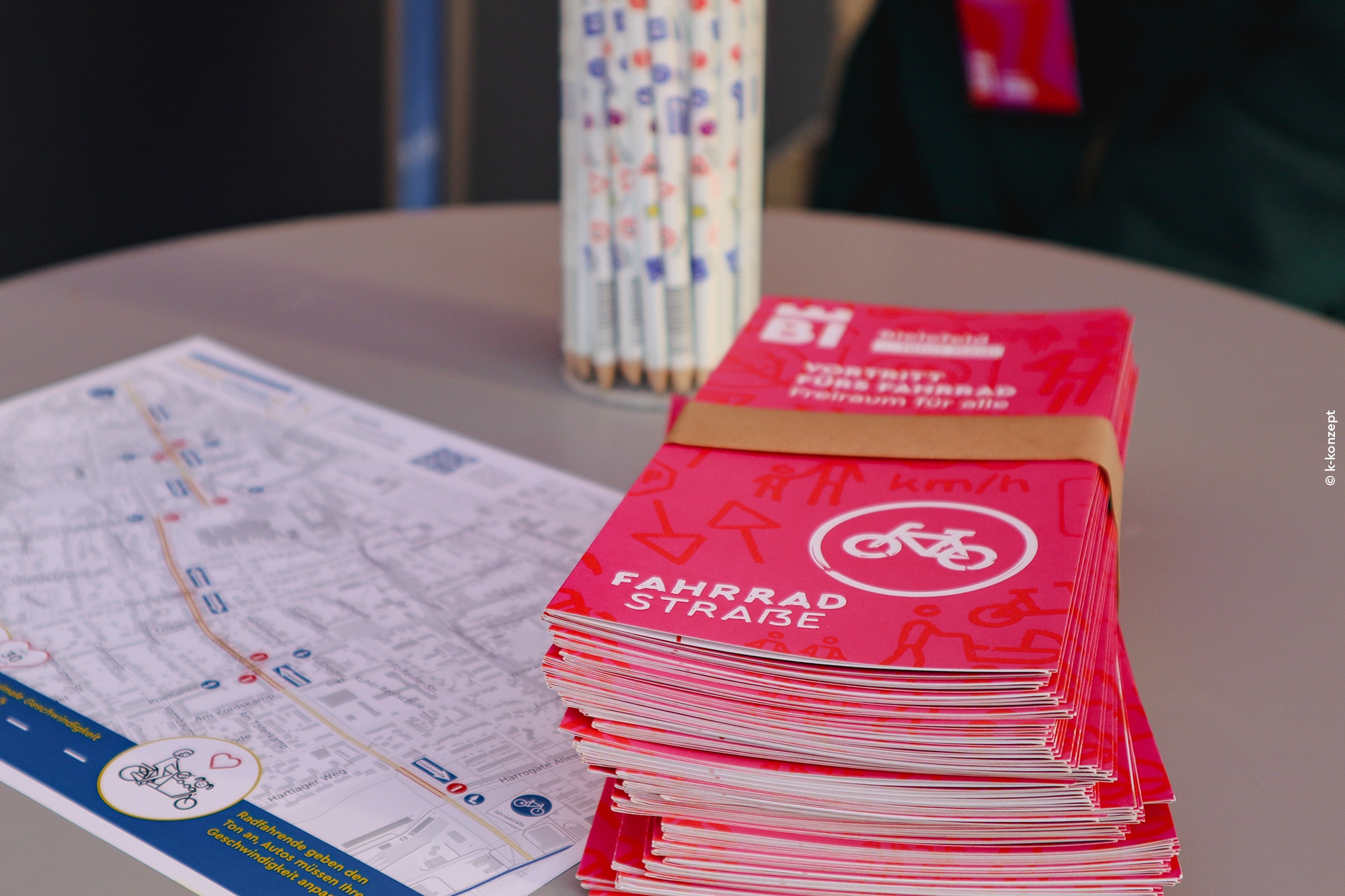 Die Kampagne ist ein Baustein der Marketingstrategie „Bielefeld … fährt Rad“ und wird sich mit ihrem visuellen Erscheinungsbild ab jetzt in allen Maßnahmen für zukünftige Fahrradstraßen wiederfinden.