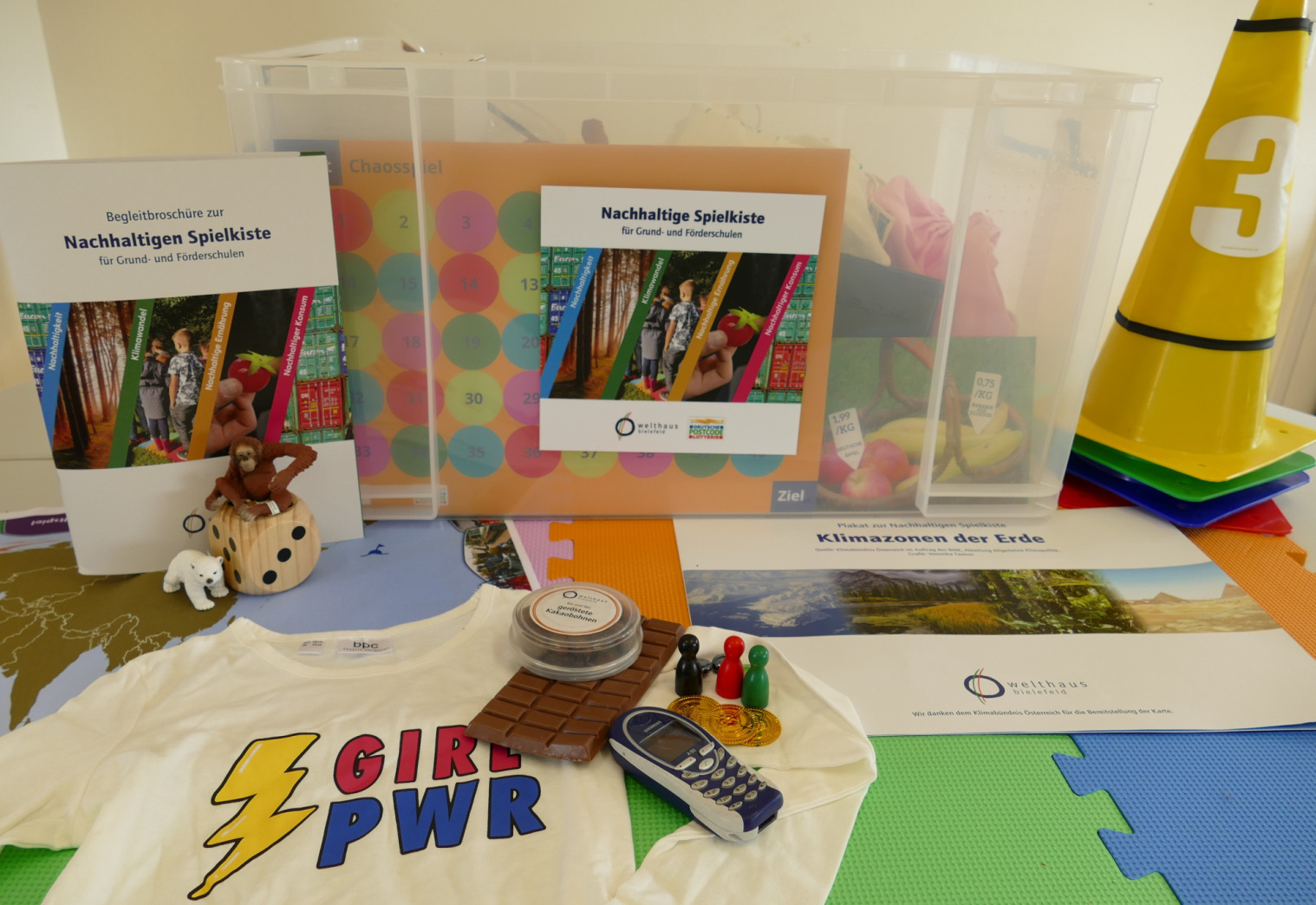 Sich altersgerecht mit Ideen einer nachhaltigen Entwicklung zu befassen, ist das Ziel dieses Angebots. Mithilfe unserer „nachhaltigen Spielkisten“ entdecken die Kinder die Themen „Klimawandel“, „Nachhaltige Ernährung“, „Nachhaltiger Konsum und Fairer Handel“ – und dies über spielerische Ansätze und mithilfe von haptischen Materialien. Wir arbeiten mit einer Weltkarte, mit Tierfiguren und Lebensmittelattrappen, mit Bingos, Quizzen u.ä.m. Kooperationsübungen sind ebenfalls Teil unseres Programms. Sie können nach Absprache ein Thema oder eine Kombination aus verschiedenen Themenfeldern wählen. Unsere „nachhaltigen Spielkisten“ zeigen bestimmte soziale und ökologische Fehlentwicklungen auf, vermeiden es aber, Zukunftsängste zu verbreiten. Stattdessen sollen auch altersangemessene Handlungsoptionen dargestellt und erläutert werden.