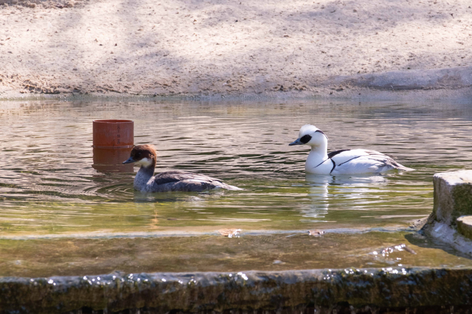 Der Zwergsäger (Mergellus albellus) zählt zu den Entenvögeln. Säger besitzen als große Besonderheit einen schmalen, aber an der Seite zackig gezähnten Schnabel mit einer hakenförmigen Spitze. Damit können sie Fische, ihre Hauptbeute, sicher halten. Fische werden unter Wasser tauchend verfolgt. Männchen und Weibchen lassen sich beim Zwergsäger sehr gut unterscheiden: Bei den Weibchen ist der Kopf braun, bei den Männchen schwarz. Zwergsäger kommen im hohen Norden vor, aber als Wintergast kommen sie auch an die Küsten Deutschlands.