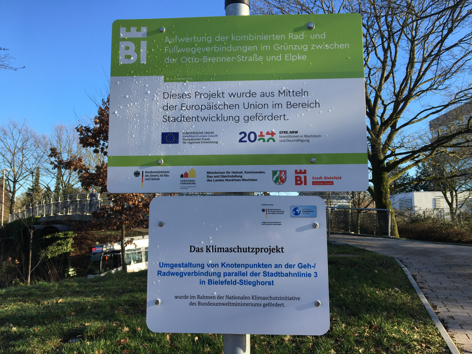 Die Wegeverbindung von der Otto-Brenner-Straße bis zur Elpke wurde als eine Maßnahme des integrierten Handlungskonzeptes (INSEK) Sieker-Mitte zu einem komfortablen Fuß- und Radweg ausgebaut. Das INSEK Sieker-Mitte hat die Zielsetzung die städtebauliche, sozialräumliche und freiraumgestalterische Situation im Quartier Sieker-Mitte zu verbessern und damit auch die Lebenssituation der Menschen vor Ort. Ausgangssituation stellte der uneinheitliche und schlechte Zustand des Fuß- und Radweges dar, weshalb die Wegeverbindung im Rahmen des INSEK Sieker-Mitte barrierefrei gestaltet und Angsträume in diesem Bereich beseitigt werden sollten.