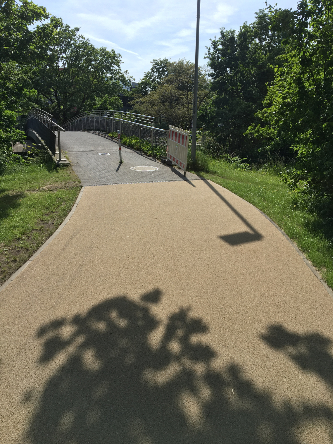 Im Ergebnis konnte die Wegeverbindung auf eine einheitliche Breite von 4 Metern ausgebaut, zusätzliche Beleuchtung installiert und eine einheitliche Oberfläche geschaffen werden.