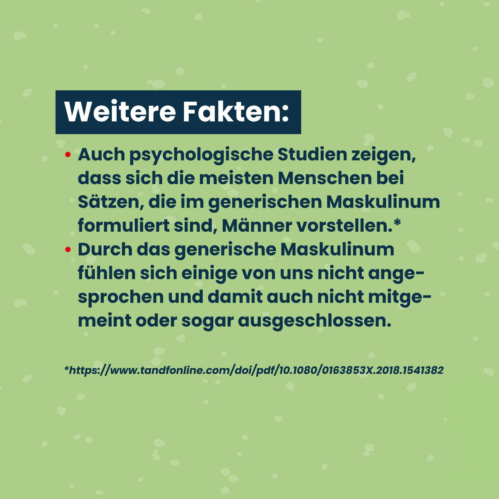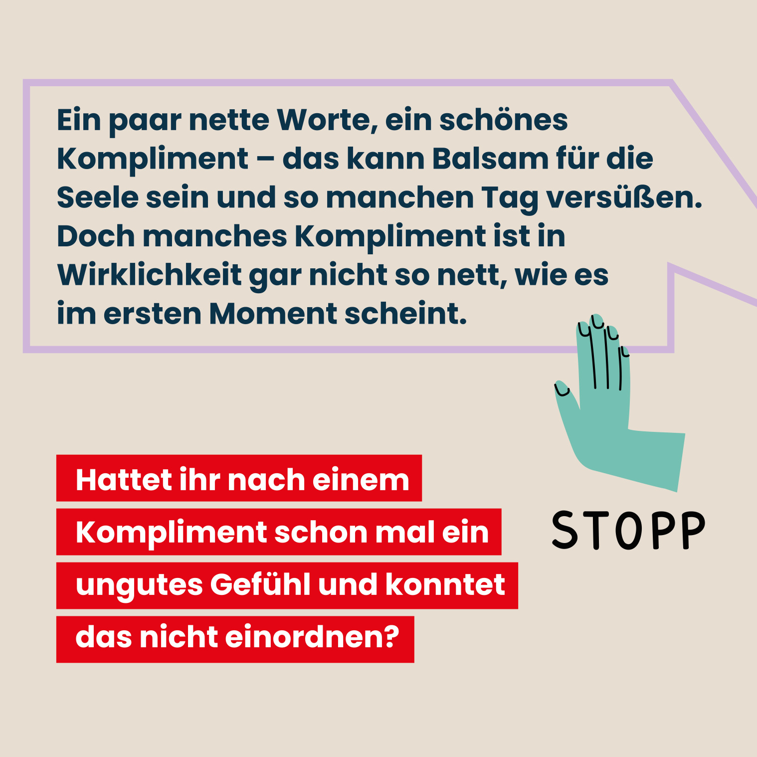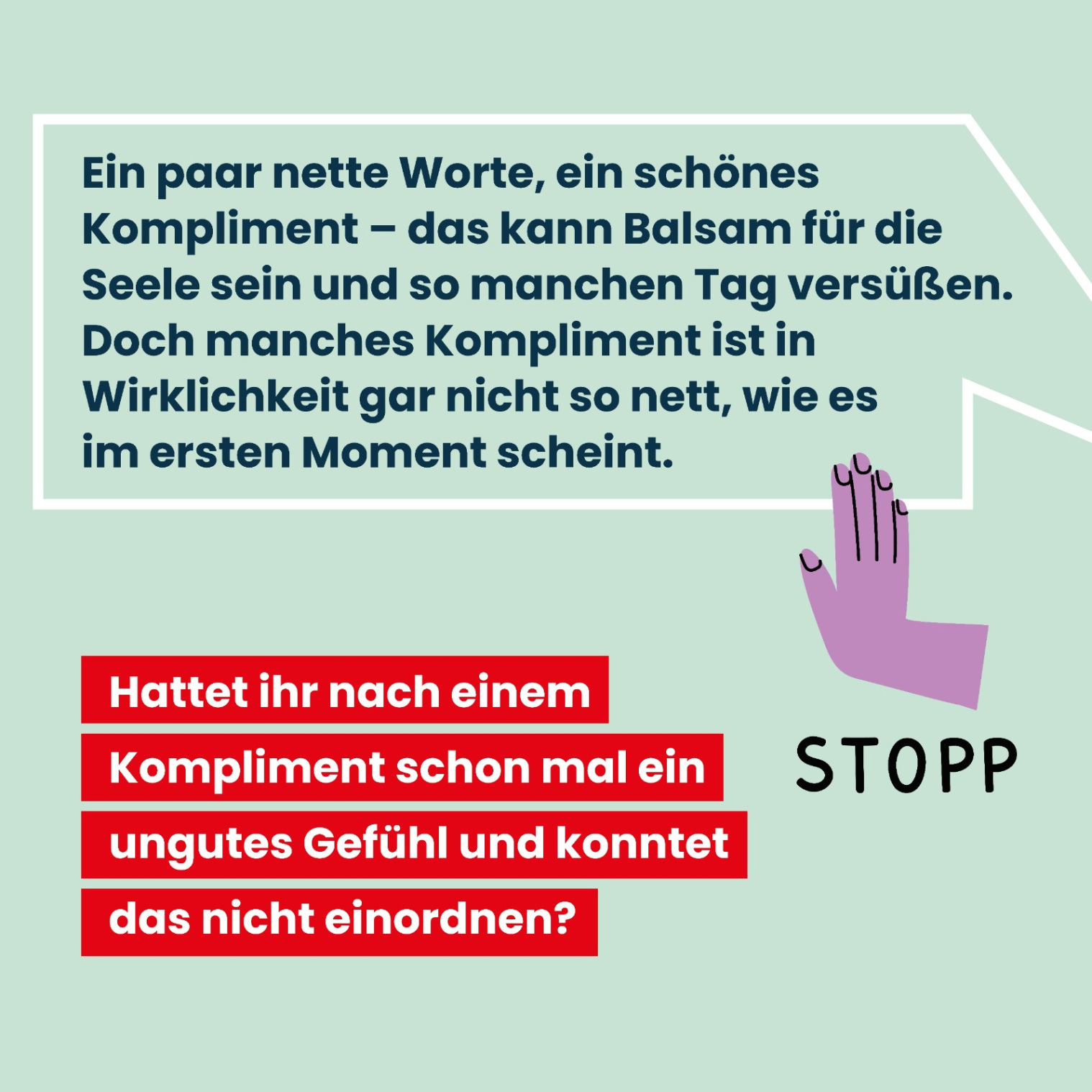 Social Media Posts Geschlechtergerechte Sprache Checkliste geschlechtergerechte Sprache Geschlechtergerechte Sprache bei Anträgen und Formularen Leitfaden Anschreiben geschlechtergerechte Sprache Geschlechtergerechte Formulierungen bei Ausschreibungen Komplimente, die keine sind - Alter Komplimente, die keine sind - Geschlecht Komplimente, die keine sind - Sexuelle Identität Komplimente, die keine sind - Kultur und Ethnie Komplimente, die keine sind - Behinderung Wertschätzende Kommunikation - Vielfalt Wertschätzende Kommunikation - Alter Wertschätzende Kommunikation - Geschlecht Wertschätzende Kommunikation - Sexuelle Identität Wertschätzende Kommunikation - ethnische Herkunft und Kultur Wertschätzende Kommunikation - Behinderung Sprache erzeugt Bilder