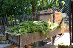 Das neue Angebot, frische Gräser zu verfüttern, ersetzt damit nun auch das Futter aus den Futterautomaten. „Als während der Coronapandemie kein Kraftfutter aus den Automaten gefüttert werden durfte, hatte das viele positive Auswirkungen auf die Tiergruppen. So gab es zum Beispiel viel weniger Aggressionen zwischen den Tieren“, informiert Ibler. „Die Kolleginnen und Kollegen haben daher nach neuen Lösungen gesucht, die jetzt mit den Grasraufen an den Hirschgehegen geschaffen wurden.“ Die Fütterungsmöglichkeiten beschränken sich daher nun auf die Sika- und Rothirsche. „Wir hoffen, Sie haben dafür Verständnis, dass wir aus Tierwohlgründen das Automatenfutter nicht mehr zur Verfügung stellen.“