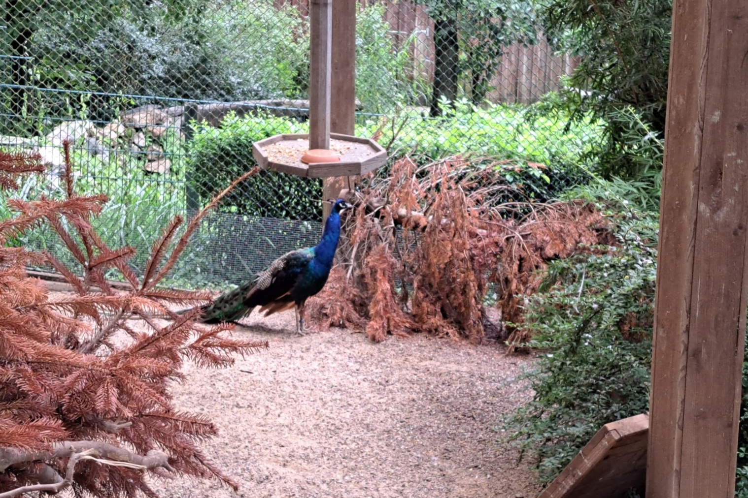 In die Vogelvolieren des Heimat-Tierparks Olderdissen sind neue Bewohner eingezogen. Der Tiergarten Kleve hat zwei Pfauenhennen an den Bielefelder Tierpark abgegeben, die sofort mit den beiden vorhandenen Hähnen vergesellschaftet wurden. Eins der beiden Paare kann nun von den Besucherinnen und Besuchern in der Voliere neben der Bärenanlage beobachtet werden. „Bei dem bisher dort lebenden Pfauenhahn haben wir mit Einzug der Henne direkt eine Verhaltensänderung beobachten können“, sagt Dr. Benjamin Ibler, Leiter des Tierparks. „Bislang hat er sich immer direkt präsentiert, nun aber hat er sich mit der Henne in den Hintergrund zurückgezogen.“