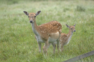Das Damwild im Tierpark bewohnt eines der landschaftlich schönsten Gehege, eine grün bewachsen sanft hügelige Landschaft, von deren höchstem Punkt man einen schönen Blick ins Johannistal hat.