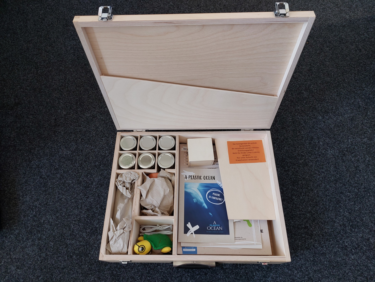 Mit Hilfe eines vorbereiteten Koffers können die Schüler*innen das Thema Wasserverschmutzung durch Plastik erarbeiten. Diese Module können auch gut in einer Projektwoche eingesetzt werden.