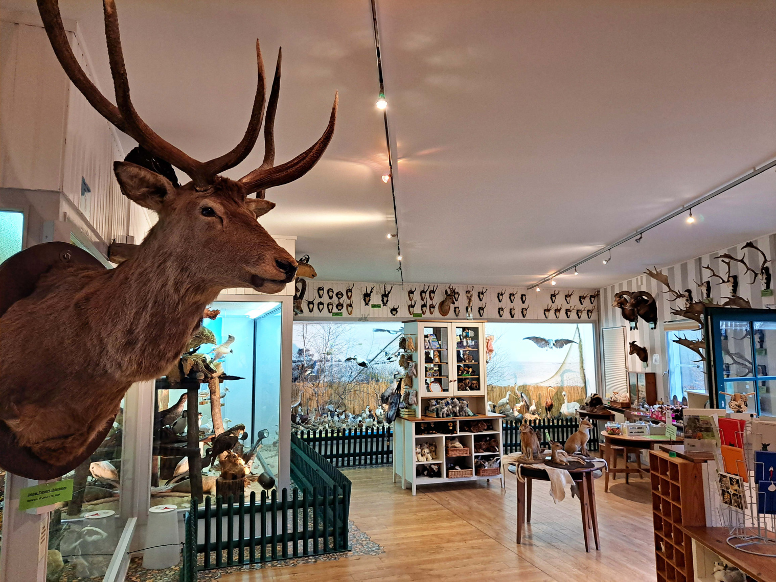 Der Tierparkleiter hat einen besonderen Tipp für Schlechtwettertage: „Unsere Tierpräparate-Ausstellung ist in einem kleinen Fachwerkhäuschen in der Nähe des Meierhofes und neben dem großen Spielplatz untergebracht. Hier kann man ganz in Ruhe und vor der Witterung geschützt sehr gut viele Tiere aus der Nähe betrachten und sich in der Tierbestimmung üben.“ Die Tiere sind in sogenannten Dioramen angeordnet, das heißt, dass sie in ihrem Lebensraum dargestellt werden. „Wir haben in der Ausstellung Präparate von nahezu allen einheimischen Vögeln“, sagt Ibler. Mit im Haus befindet sich außerdem der Tierparkshop. „Hier gibt es schöne Souvenirs und passende Erinnerungsstücke zu kaufen. Und das Beste daran: Mit jedem Einkauf im Shop unterstützt man den Tierpark“, betont Ibler.