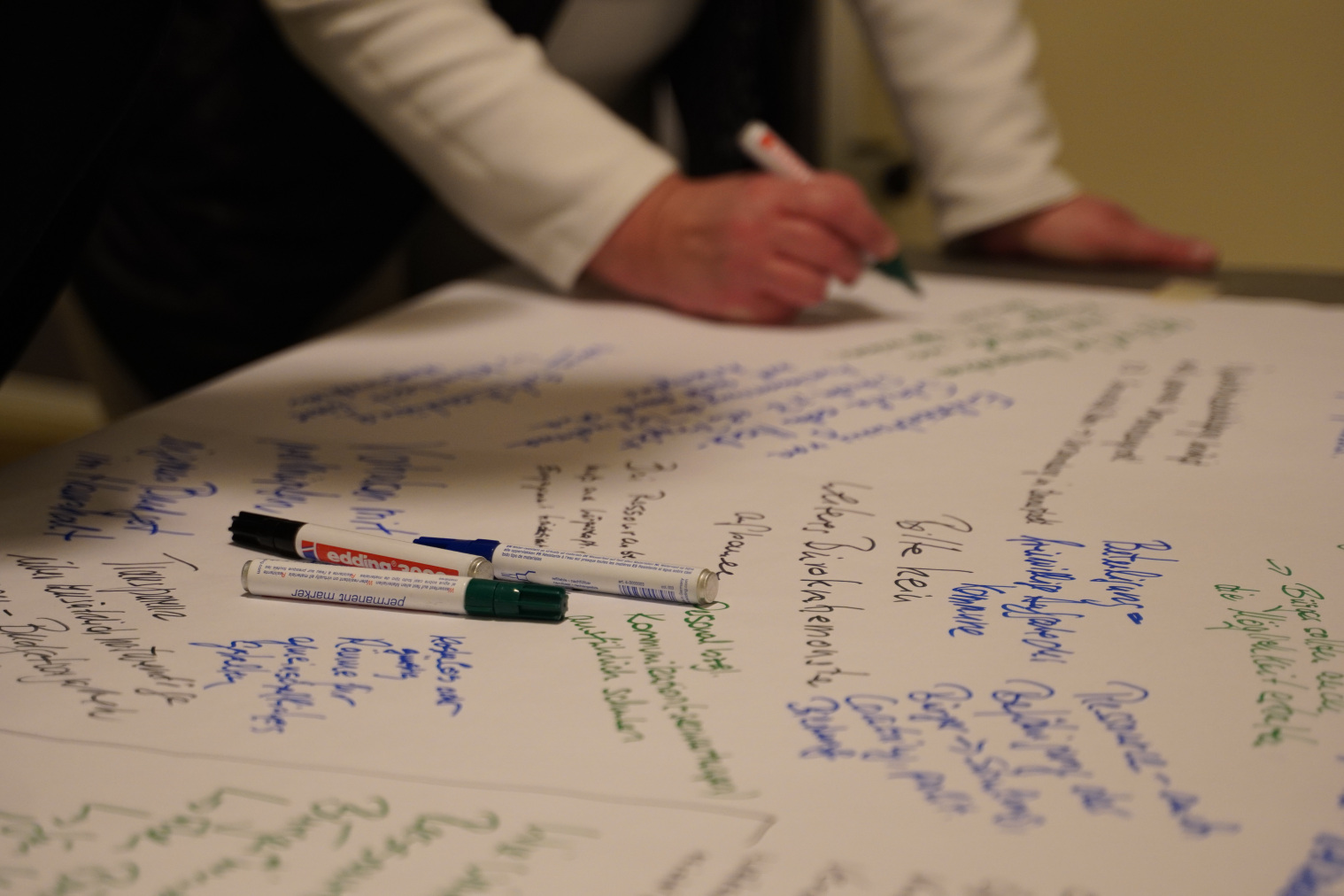 Im Anschluss haben diverse Workshops mit unterschiedlichen Zielgruppen stattgefunden. Zufällig ausgewählte Einwohnerinnen und Einwohner, Menschen mit Migrationsgeschichte , Seniorinnen und Senioren sowie Menschen mit Behinderung sind gezielt angesprochen worden, um ihre Meinung zum Entwurf abzugeben. Ebenfalls sind mehr als 50 Kinder und Jugendliche ins Freizeitzentrum Baumheide gekommen, um über die Grundsätze zu sprechen und dem Arbeitsgremium mitzuteilen, was ihnen wichtig ist.