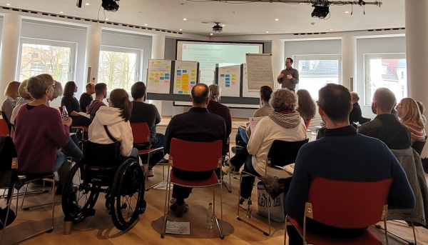Am Samstag, 10. Februar, sind insgesamt rund 50 zufällig ausgewählte Einwohner*innen in die Stadtbibliothek gekommen, um den Regelwerk-Entwurf kennenzulernen und über die Grundsätze diskutieren zu können. In beiden je 25-köpfigen Gruppen - eine vormittags und eine nachmittags - gab es viel Zuspruch für das Vorhaben und den Entwurf, aber auch unterschiedliche Anregungen und Hinweise.