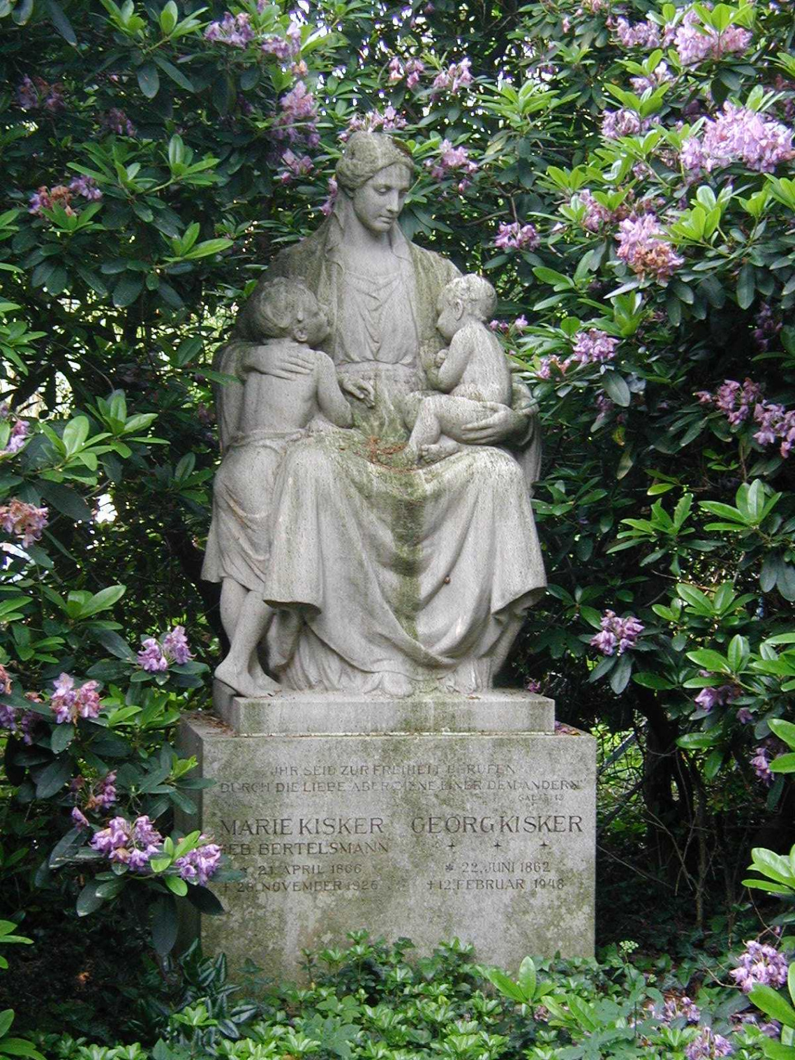 Georg Kisker war einer der Initiatoren des Sennefriedhofes. Das zu seinen Ehren 1927 geschaffene Grabmal aus Muschelkalk stammt von dem Berliner Bildhauer Emil Cauer.