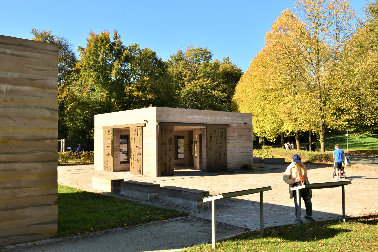 • Durch Initiative des Vereins Gegen Vergessen – Für Demokratie e.V. entstand die Landschaftsskulptur „Unter Zwang”, die die ebenfalls vorhandene dunkle Seite der Geschichte des Johannisberges, nämlich das hier gelegene Zwangsarbeiter*innenlager angemessen würdigt und eindringlich den Zwang dokumentiert, dem die damaligen Gefangenen ausgesetzt waren. Ein Corten-Stahlband markiert auf der Schotterrasenfläche einen der damaligen Barackenstandorte.