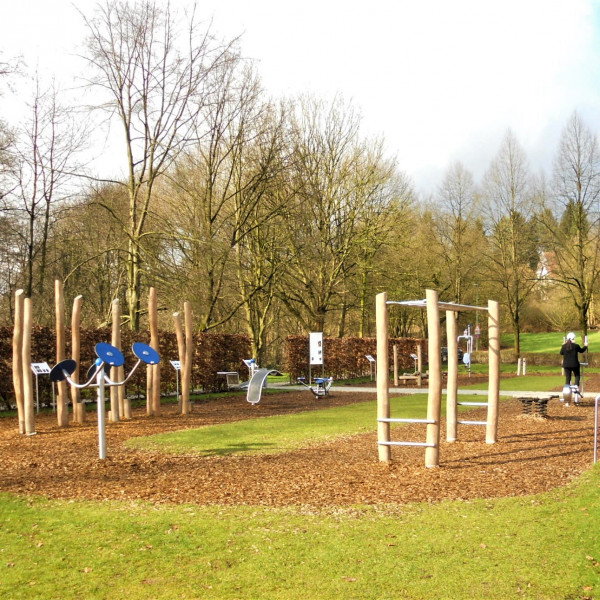 Der Parcours ist zudem ein optimaler Auftakt für den nahe gelegenen Nordic Walking Park der BKK Gildemeister Seidensticker, Kooperationspartner der Bewegungswelt. Aber auch Wandernde, Spaziergänger*innen, Kinder und Jugendliche nutzen die Geräte im Freien gern.