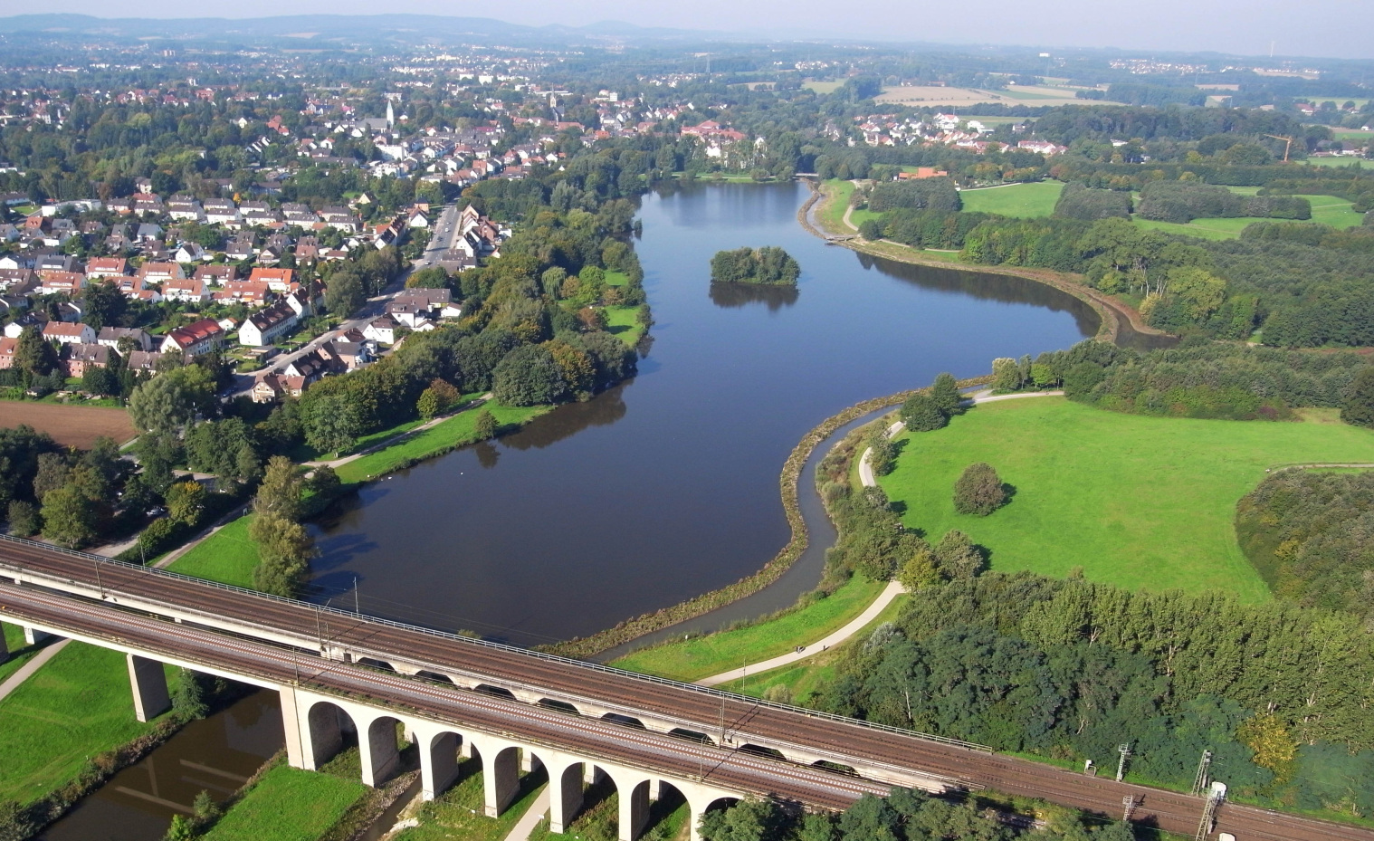 Während des Baus des Obersees in den 1970/1980er Jahren wurde der Erdaushub auf den nördlich liegenden Flächen nach dem Vorbild des Ravensberger Hügellandes landschaftsgerecht modelliert, so dass sich heute von hier aus ein wundervoller Blick über den See und auf den alten Bielefelder Stadtteil Schildesche bietet.
