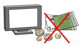 RF bedeutet: Die Person muss weniger Rundfunk-Beitrag bezahlen. Der Rundfunk-Beitrag ist Geld für Radio und Fernsehen. |