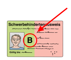 B bedeutet: Die Person darf eine Begleitperson mitnehmen. Die Begleitperson fährt kostenlos Bus und Bahn.